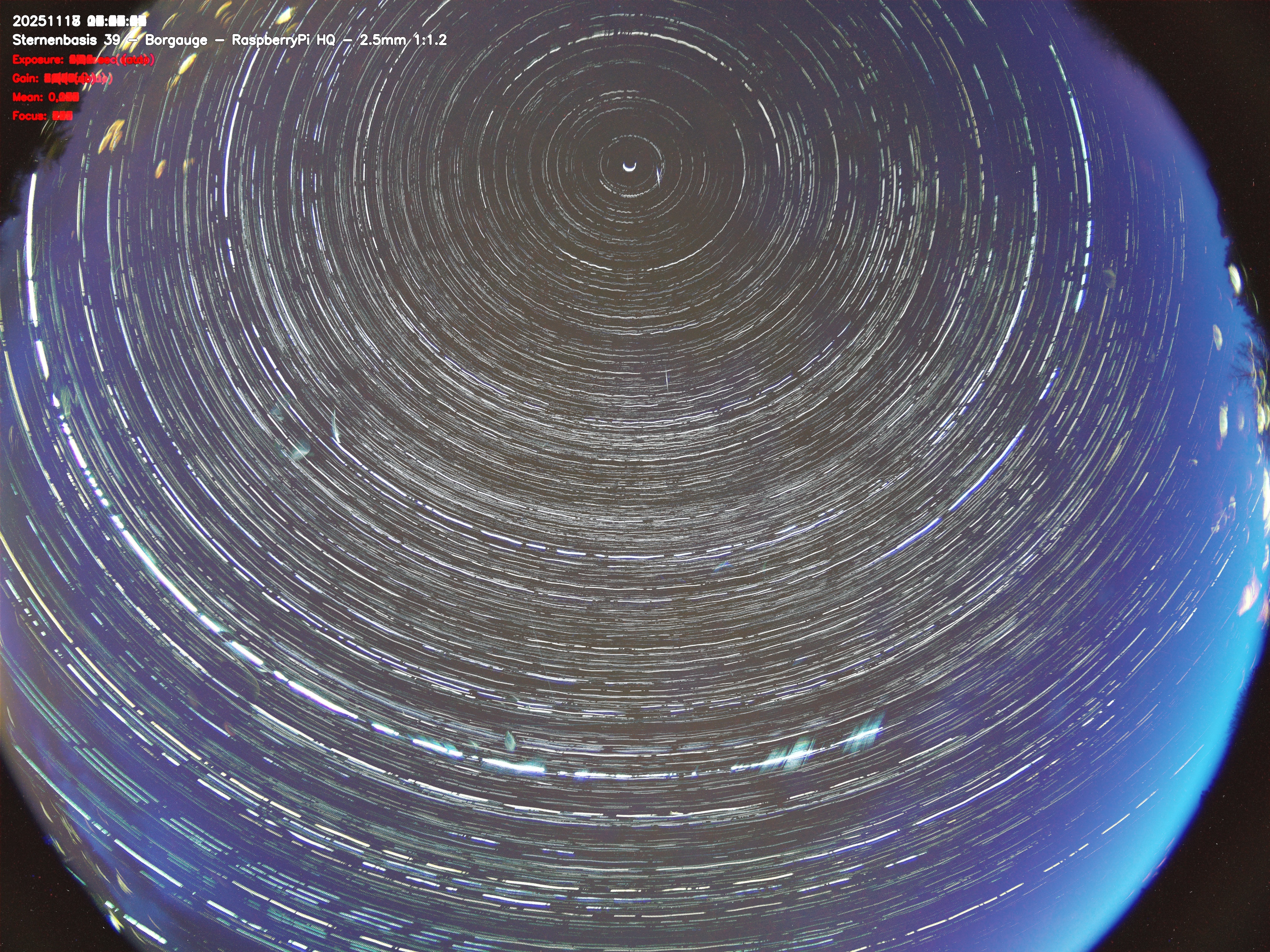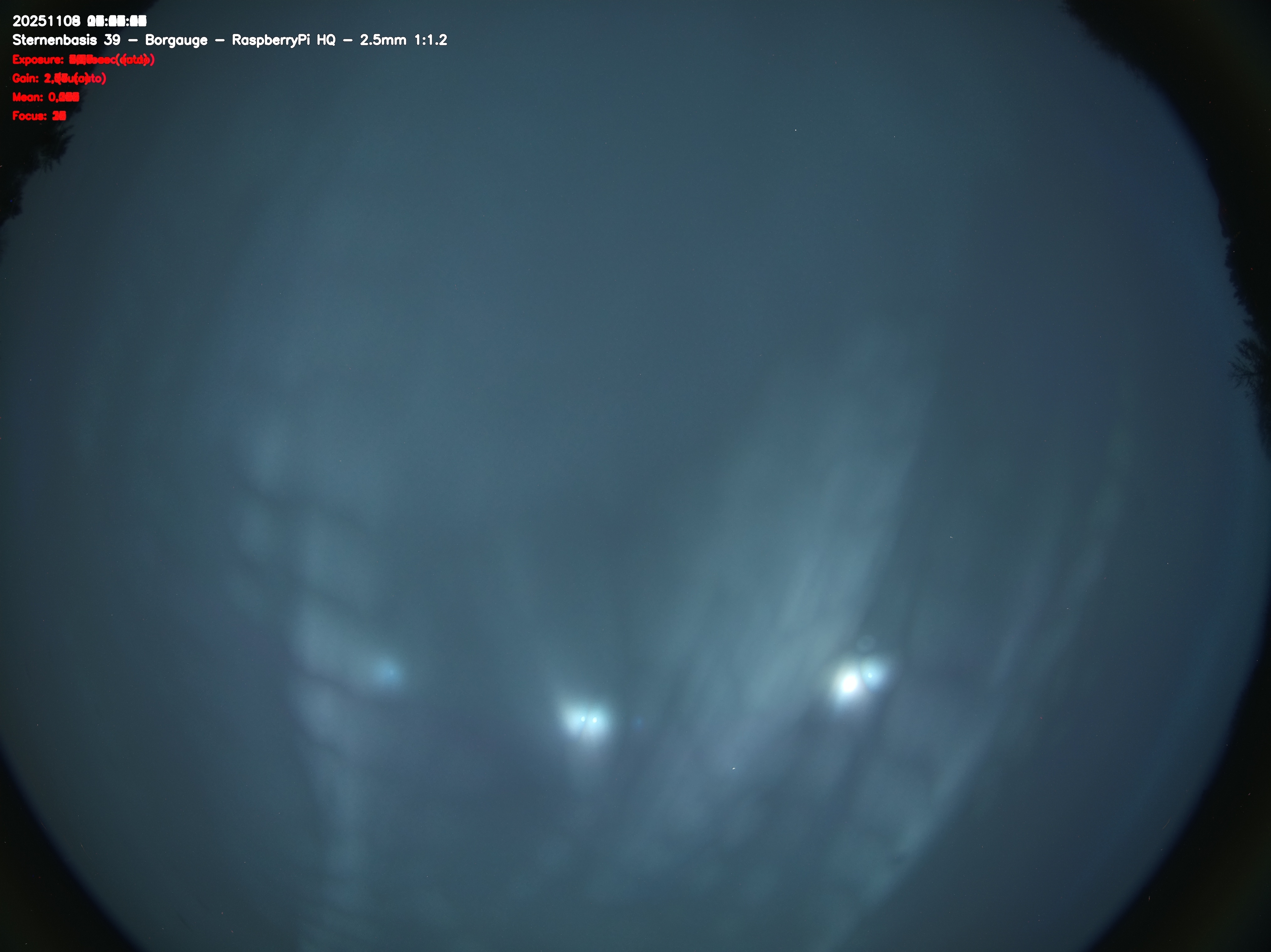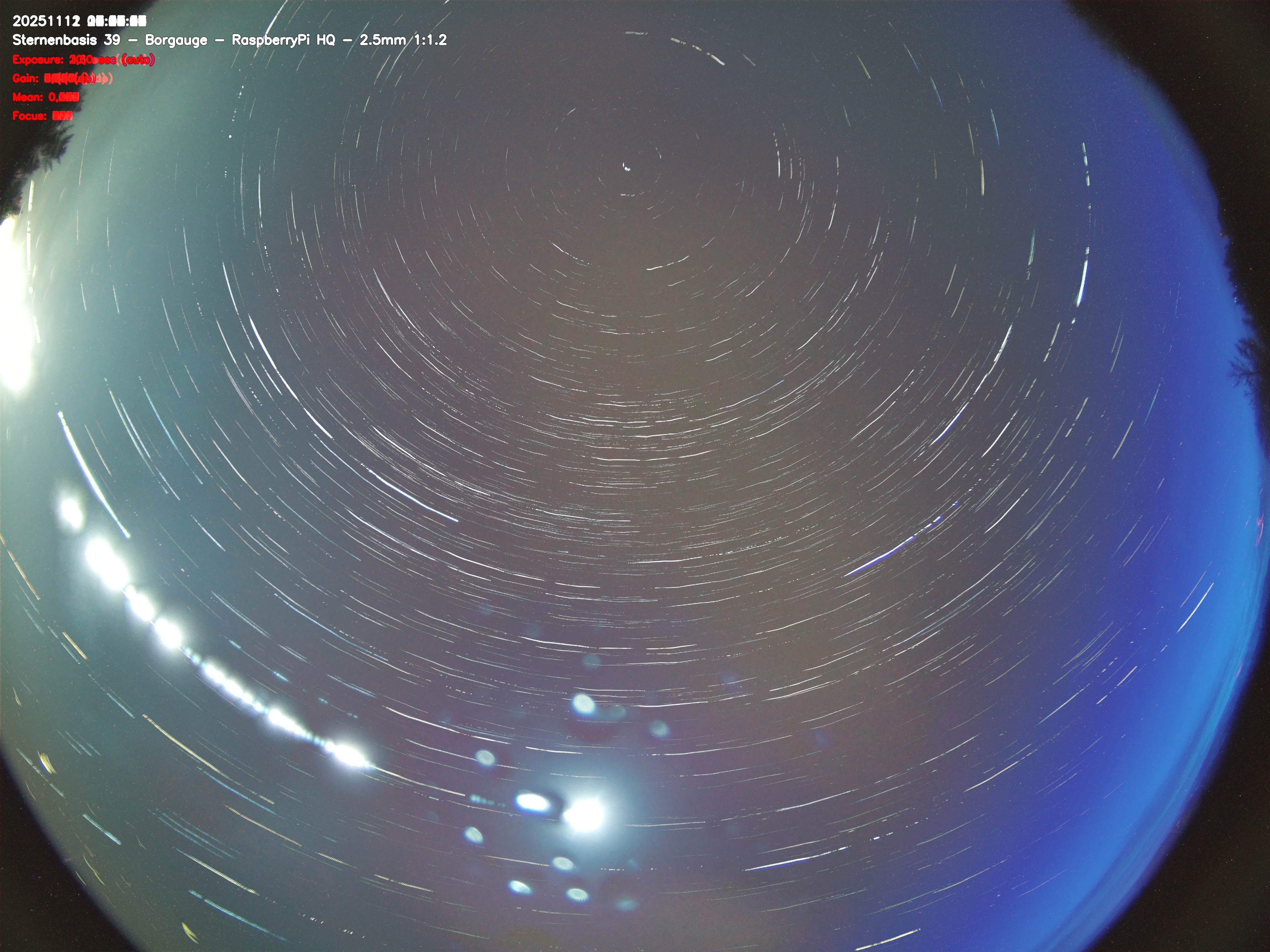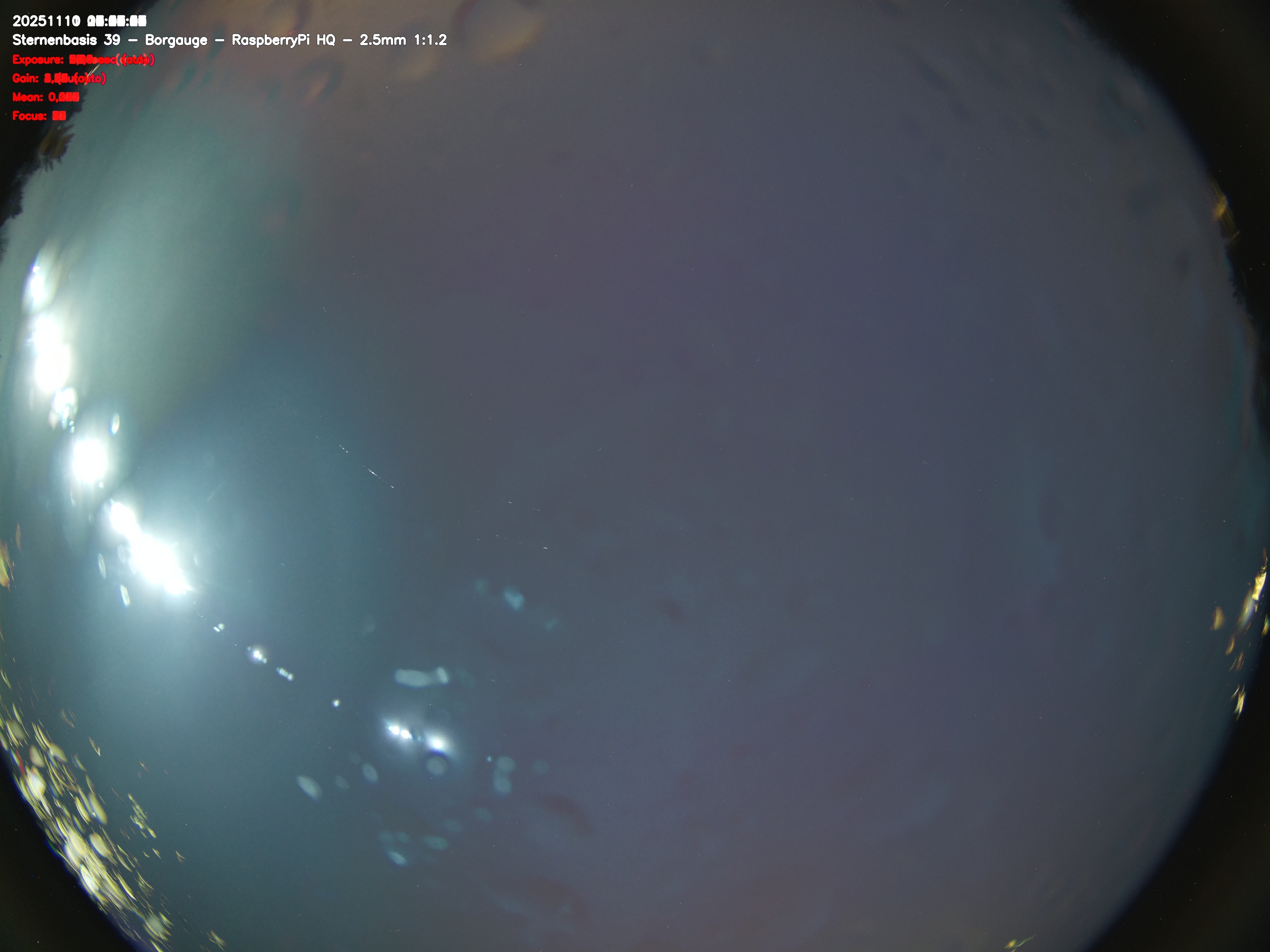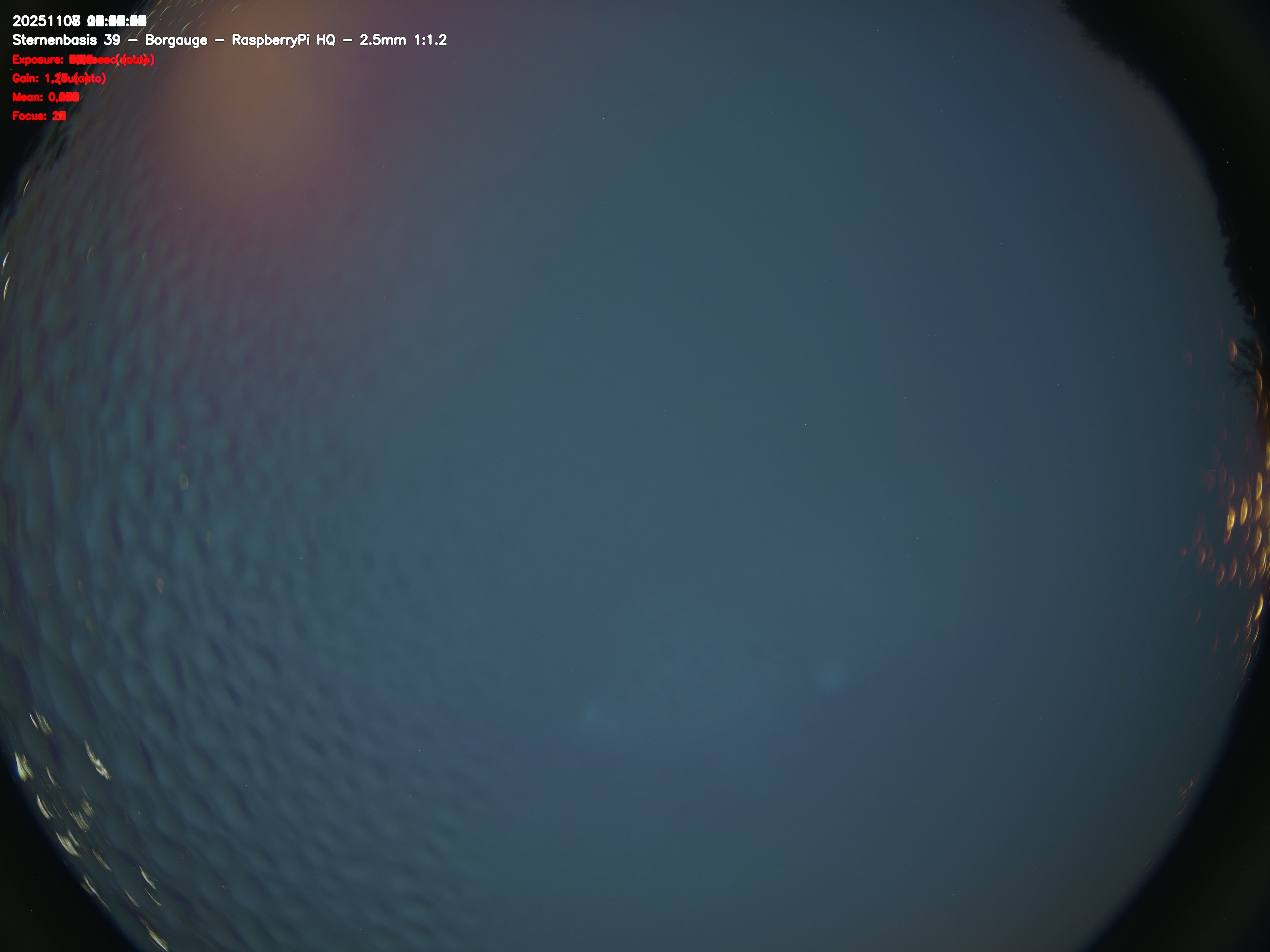 Version 2 der Allsky Kamera auf Sternenbasis 39. Die Aufnahme zeigt den Himmel auf Sternenbasis 39. Oben ist Norden. Westen ist rechts.- automatische Aktualisierung alls 90 Sekunden -