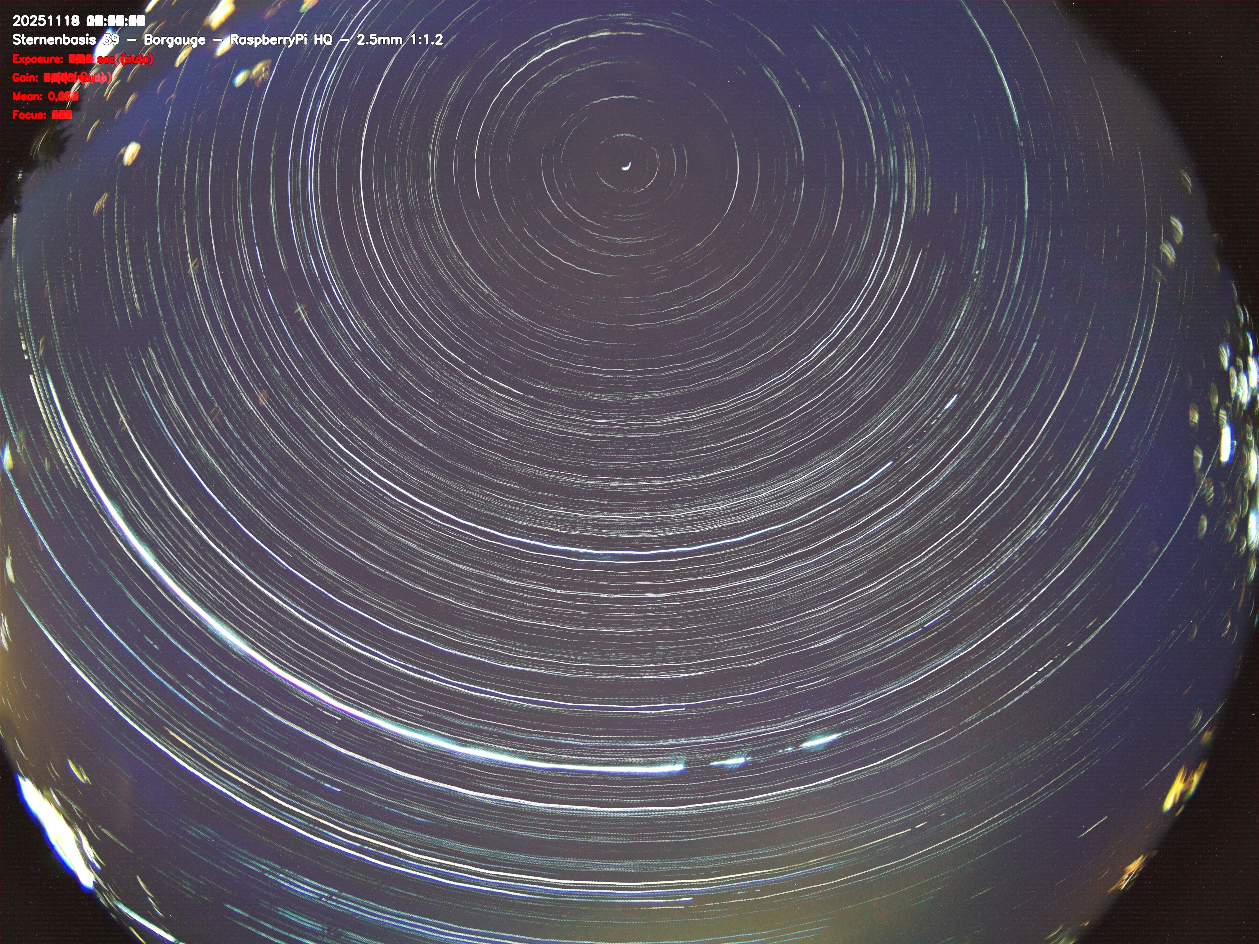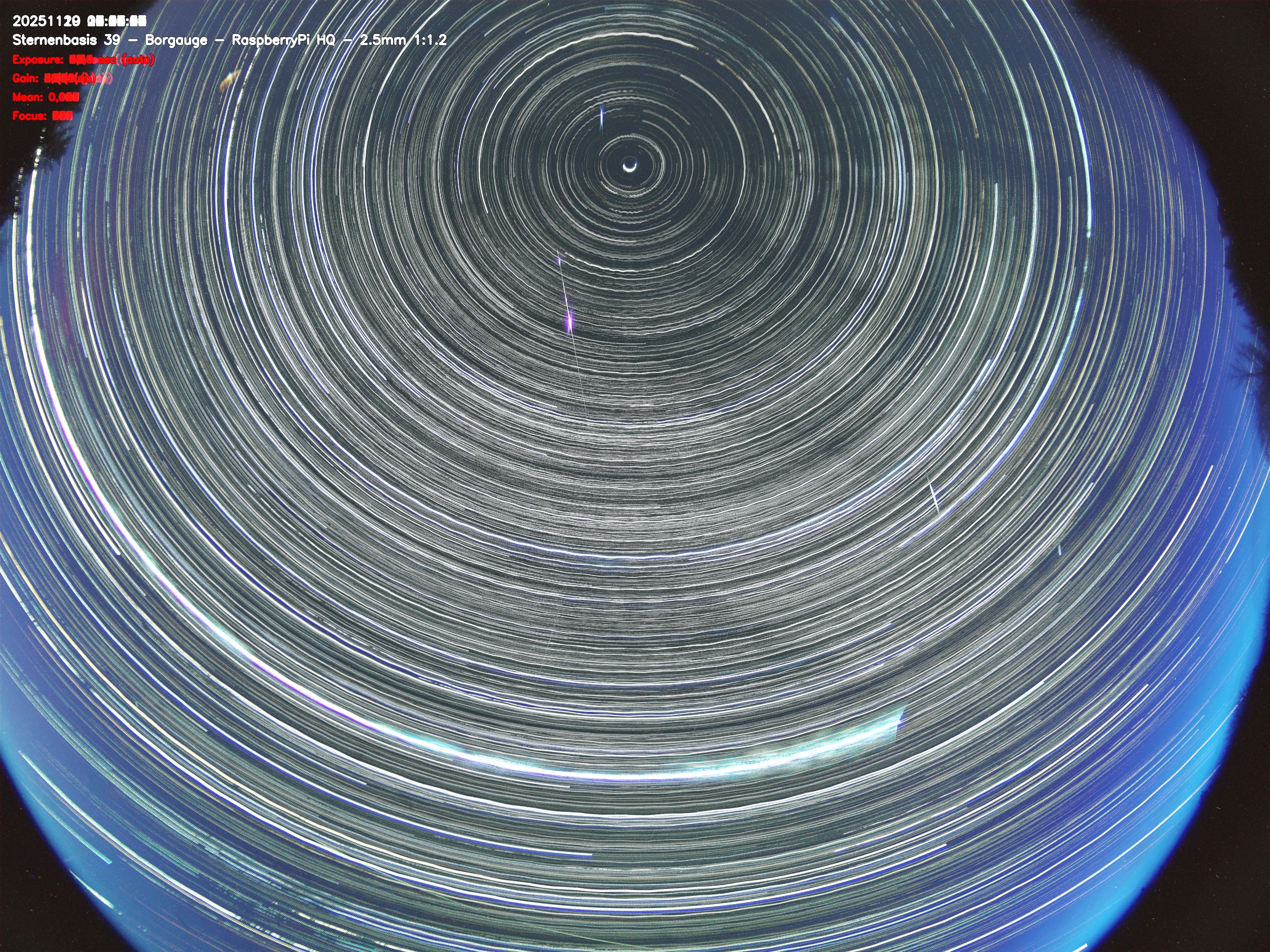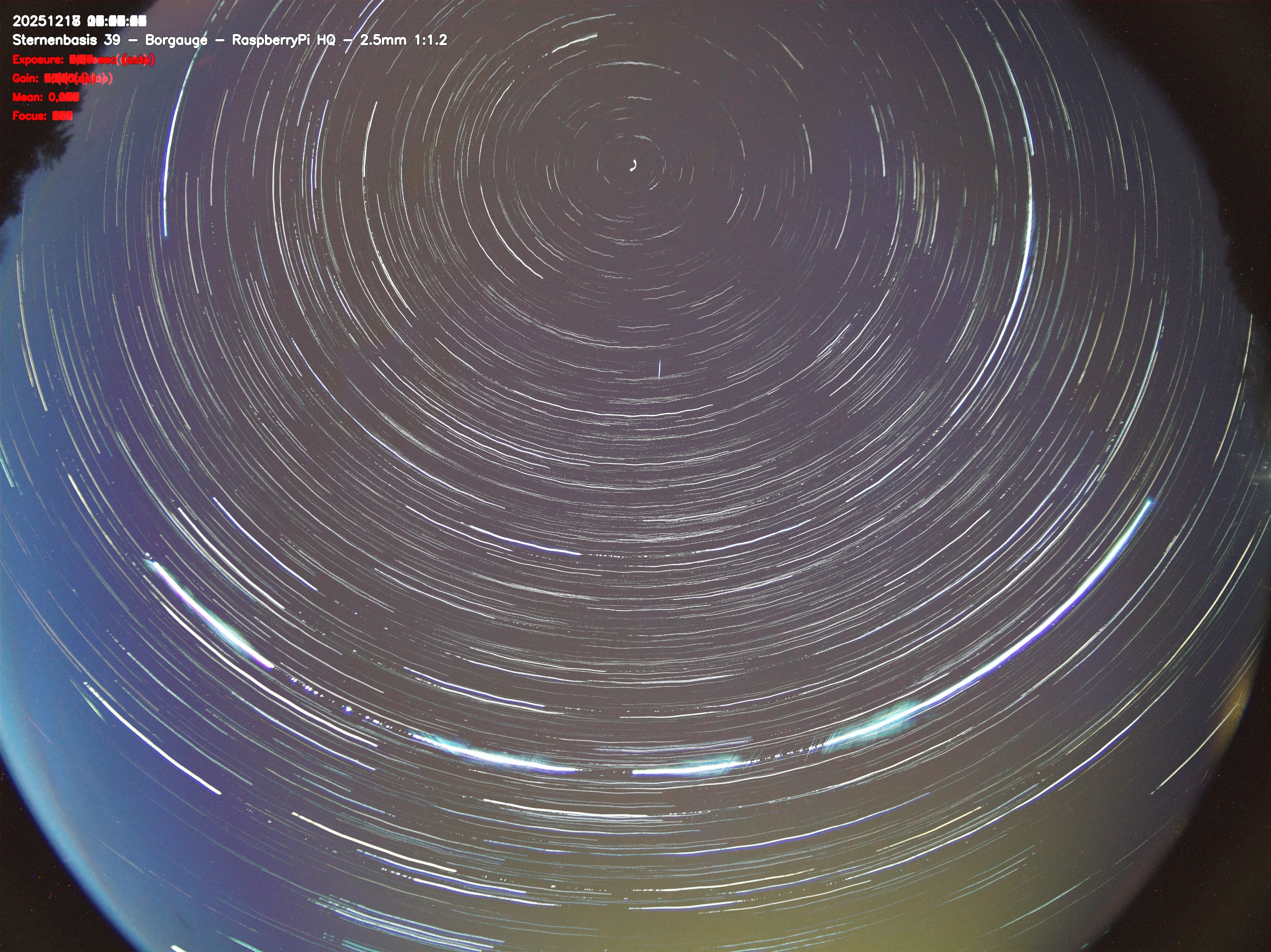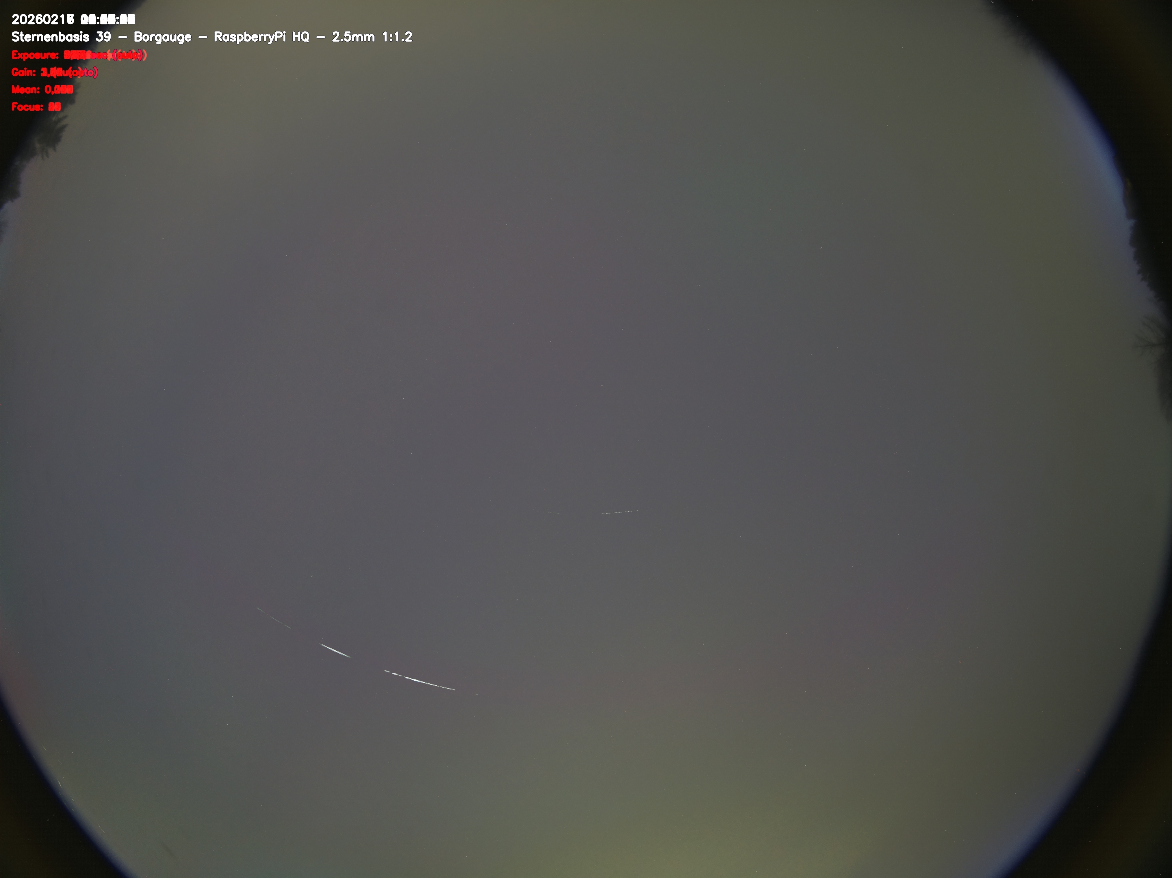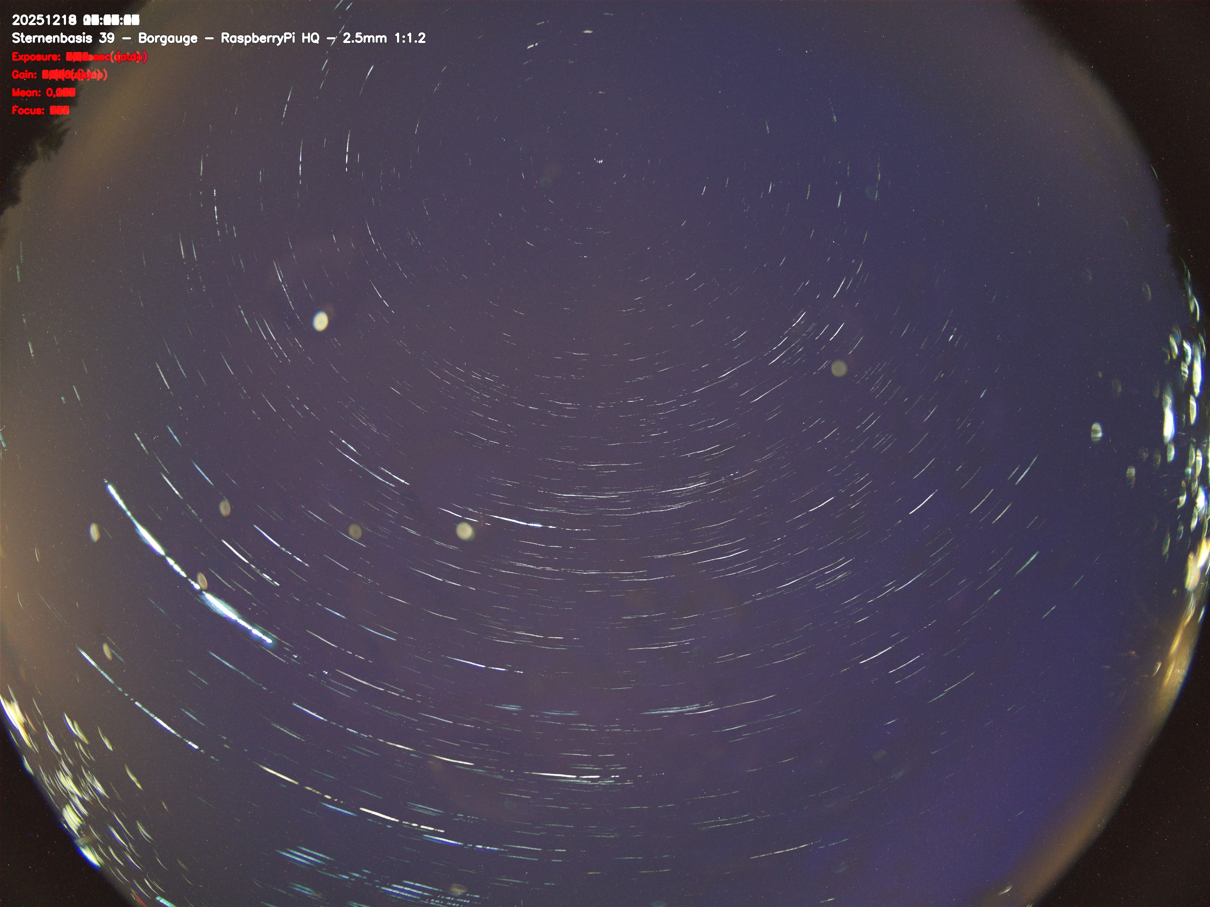 Version 2 der Allsky Kamera auf Sternenbasis 39. Die Aufnahme zeigt den Himmel auf Sternenbasis 39. Oben ist Norden. Westen ist rechts.- automatische Aktualisierung alls 90 Sekunden -