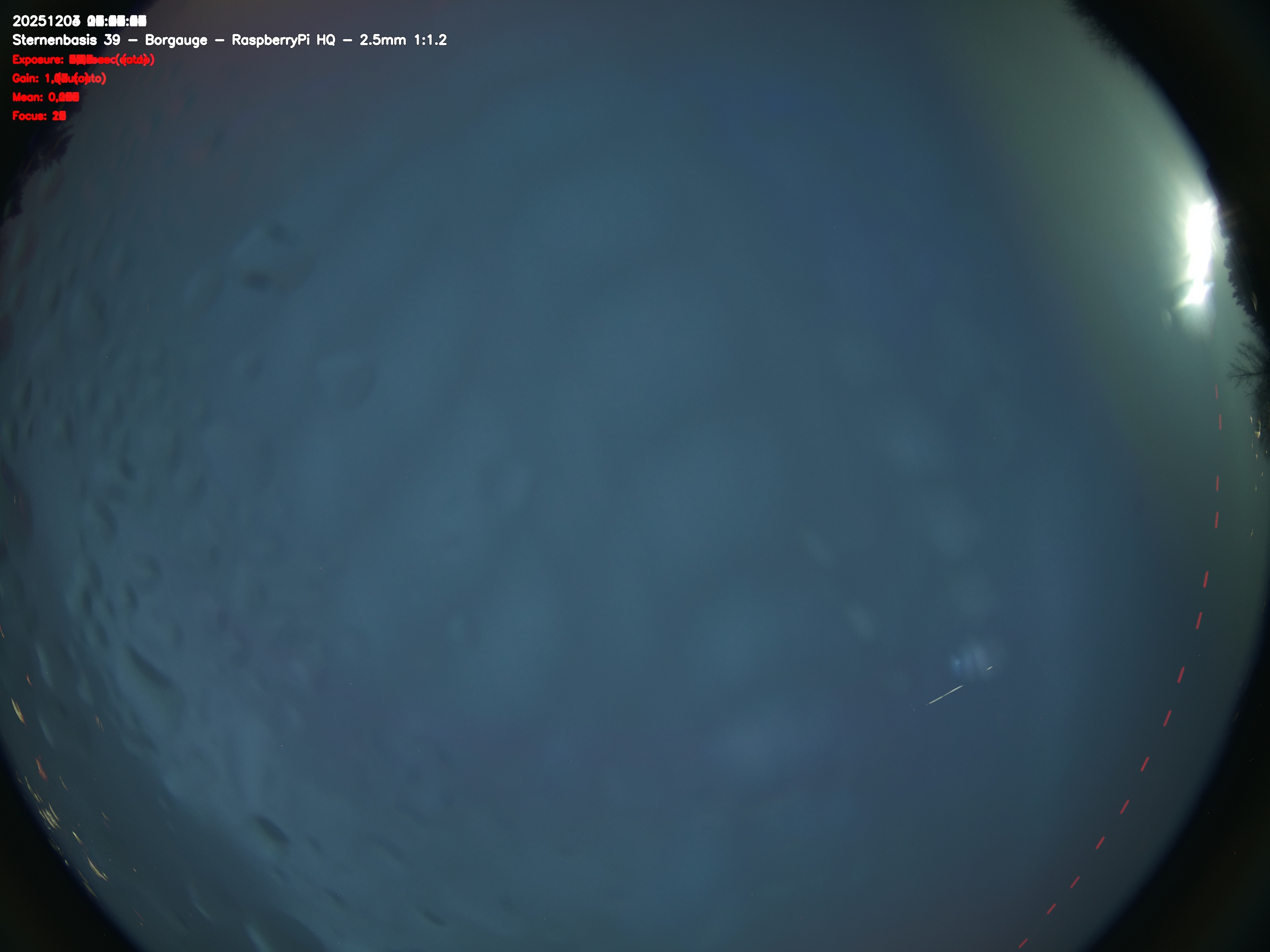 Version 2 der Allsky Kamera auf Sternenbasis 39. Die Aufnahme zeigt den Himmel auf Sternenbasis 39. Oben ist Norden. Westen ist rechts.- automatische Aktualisierung alls 90 Sekunden -